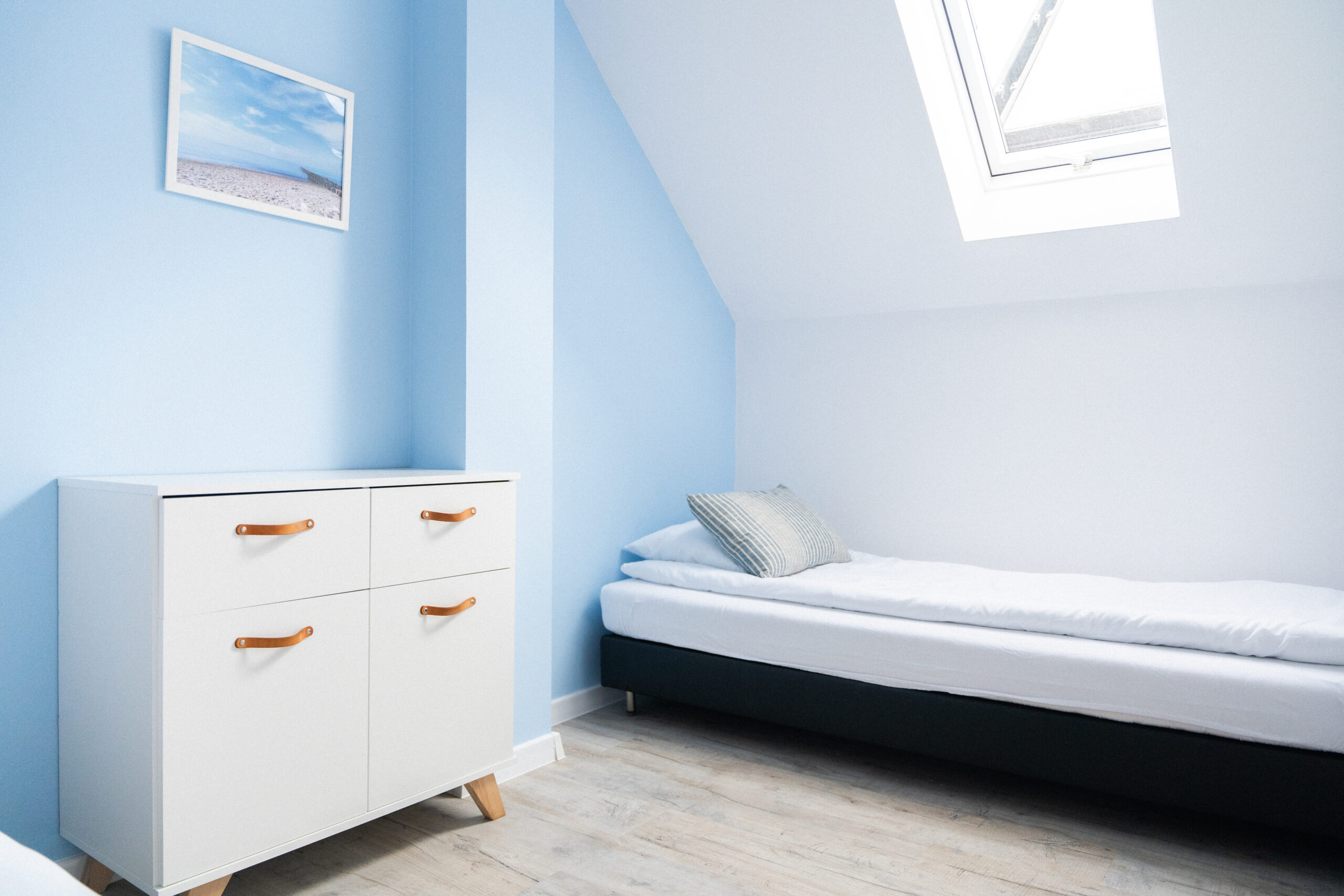Na parterze każdego domku znajduje się przestronny salon z rozkładaną kanapą, w pełni wyposażony aneks kuchenny z jadalnią oraz łazienka z prysznicem. Na piętrze znajdują się dwa niezależne pokoje – w jednym z nich znajduje się łóżko podwójne, a w drugim łóżka jednoosobowe.
